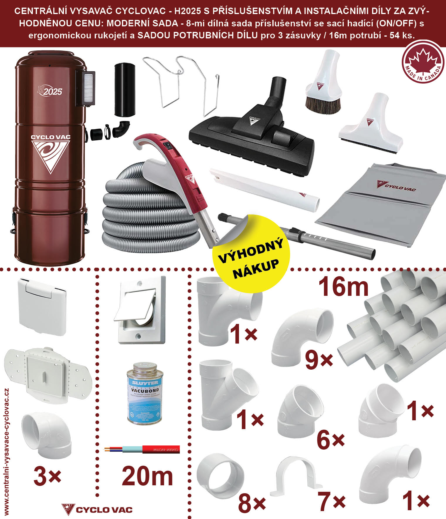 Centrální vysavač Cyclovac - H2025 - Moderní sada Potrubí 16m