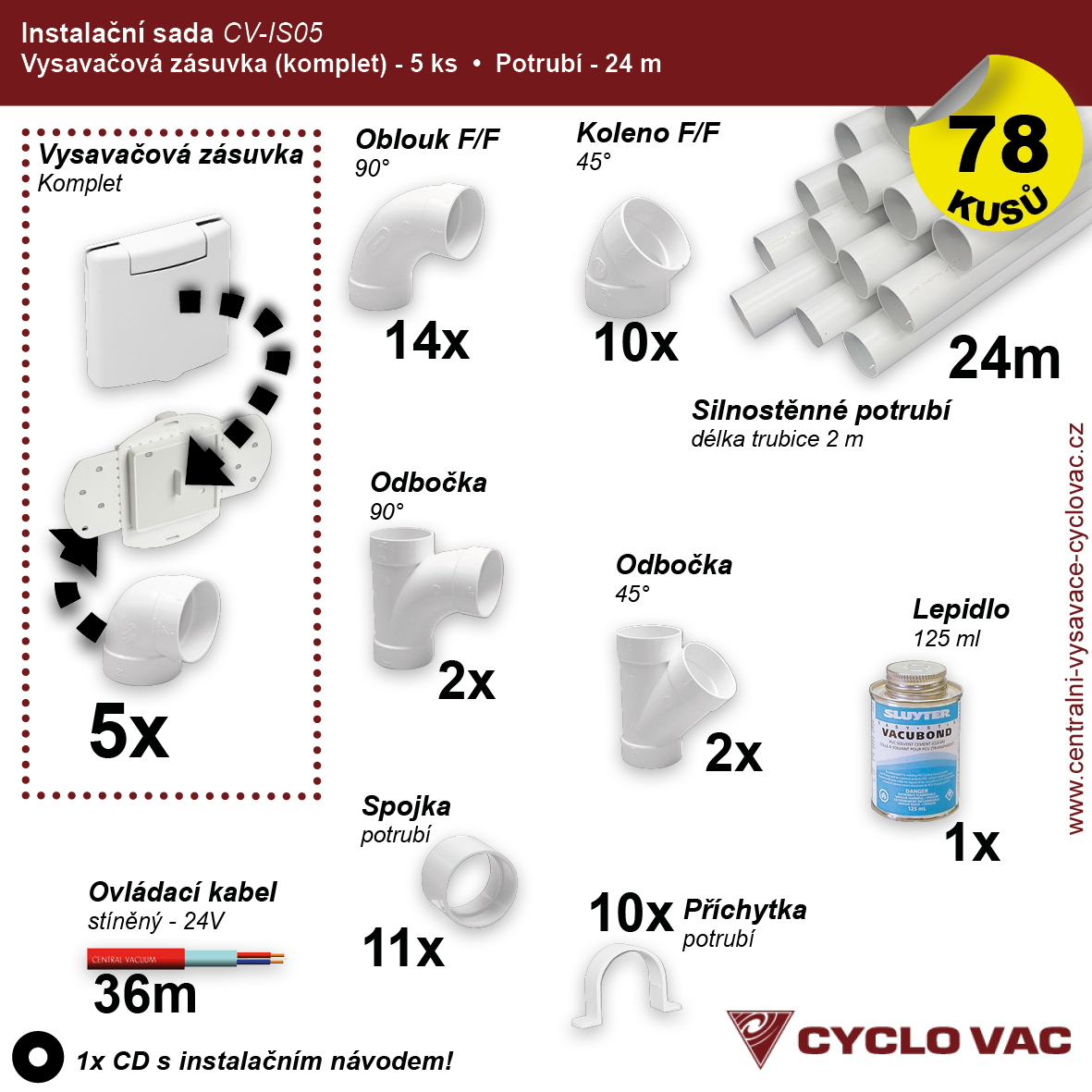 Instalační sada5 potrubí (24m) zásuvkový komplet(5ks)