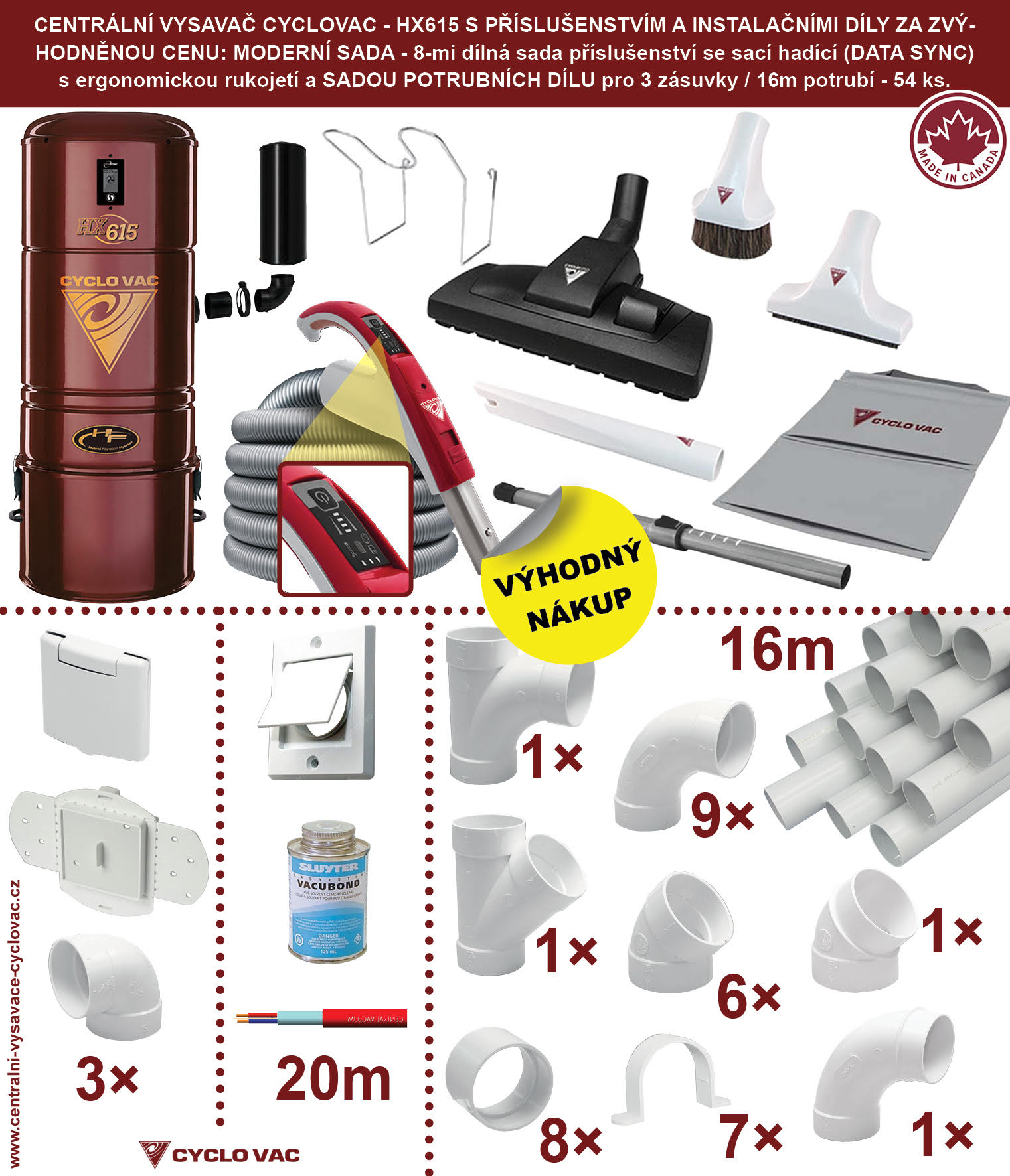 Centrální vysavač Cyclovac - HX615 - Moderní sada Potrubí 16m