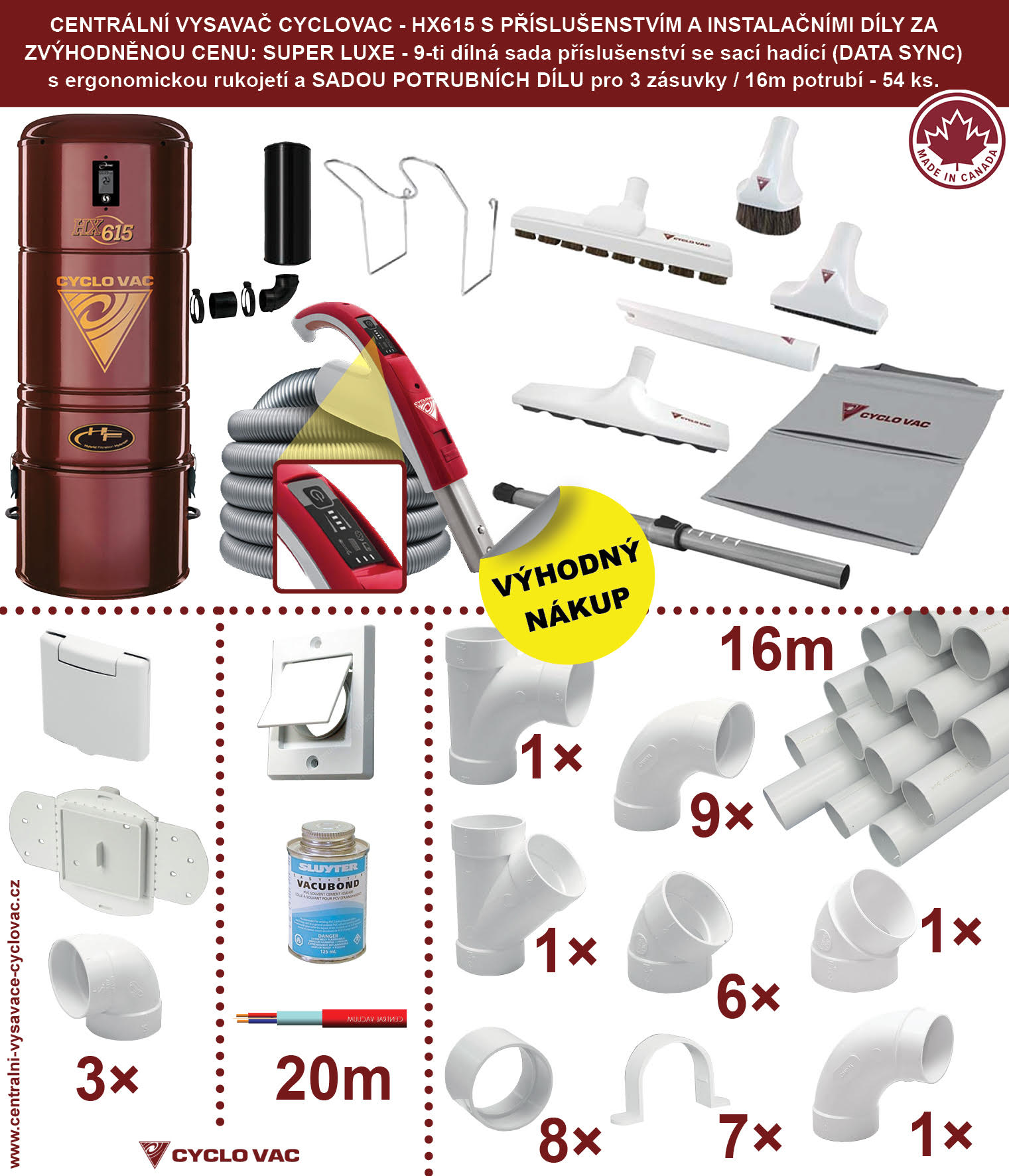 Centrální vysavač Cyclovac - HX615 - Super luxe sada Potrubí 16m