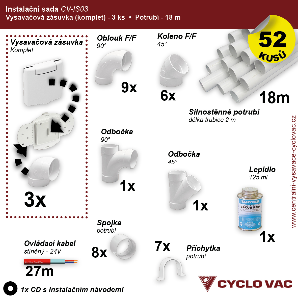 Instalační sada - Potrubí (18m) Zásuvkový komplet Del. (3ks)