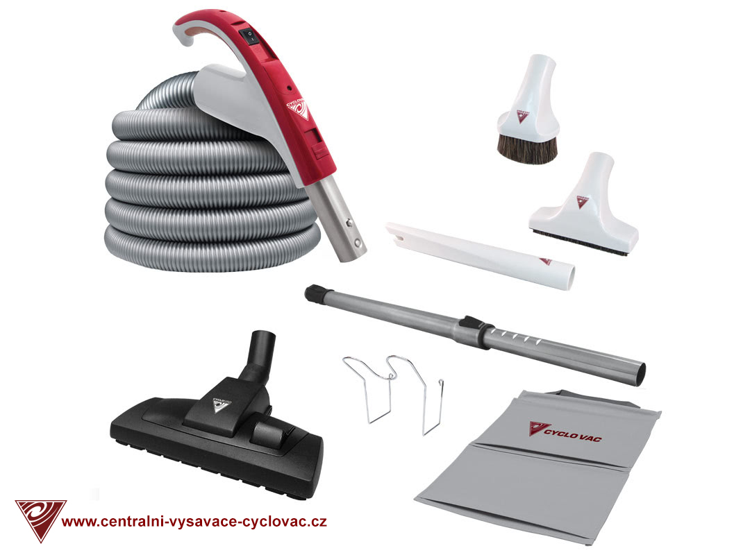 Moderní čisticí sada Cyclo Vac - hadice 9.1 m nebo 10.7 m (ON/OFF), univerzální podlahová hubice. Sada originálního příslušenství pro centrální vysávání - (8ks).